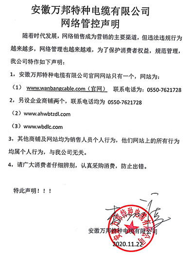鄭重聲明:安徽萬邦特種電纜有限公司官方網站為:www_wanbangcable_com.qfeoryt.cn,除此之外無任何子網站或合作網站,其余均為假冒偽劣。電話:0550-7621728 13485756353 地 址:安徽省天長市滁州高新技術產業開發區經四路29號